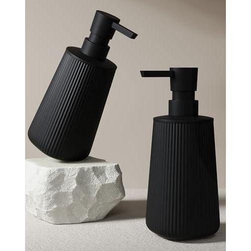 Pompalı tasarımı sayesinde sıvı sabun ve losyon kullanımını kolaylaştırır. İki ayrı şişeden oluşan set, farklı sıvılar için pratik bir çözüm sunar. Mat siyah rengi sayesinde diğer banyo aksesuarlarıyla kolayca uyum sağlar.
