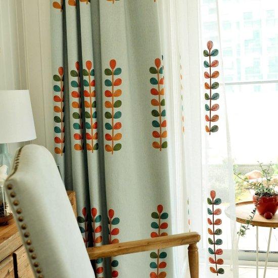İskandinav Tarzı Yaprak Desenli Keten Perde Seti