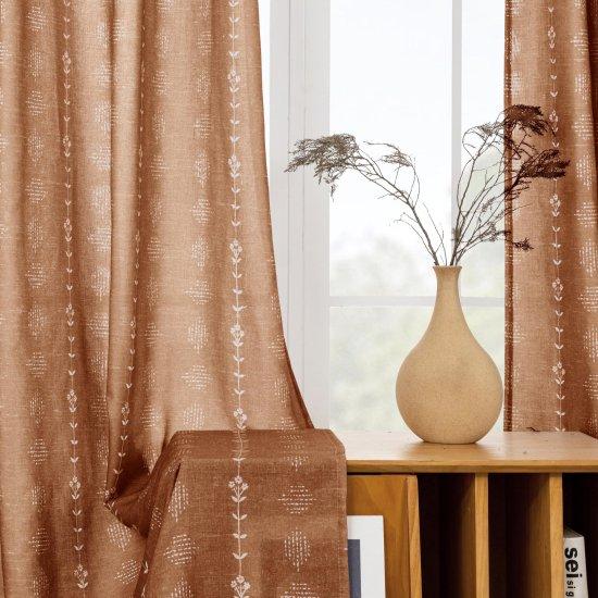 Perdeler, rustik ve bohem tarzı seven ev sahipleri için ideal. Oturma odası ve yatak odası gibi farklı mekanlarda kullanılabilir. Toprak tonlarındaki pas rengi, doğal ve sıcak bir atmosfer yaratarak iç mekanların dekorasyonuna zarafet katıyor.