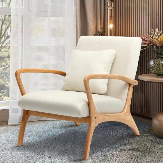 Krem Rengi Ahşap Çerçeveli İskandinav Tekli Koltuk