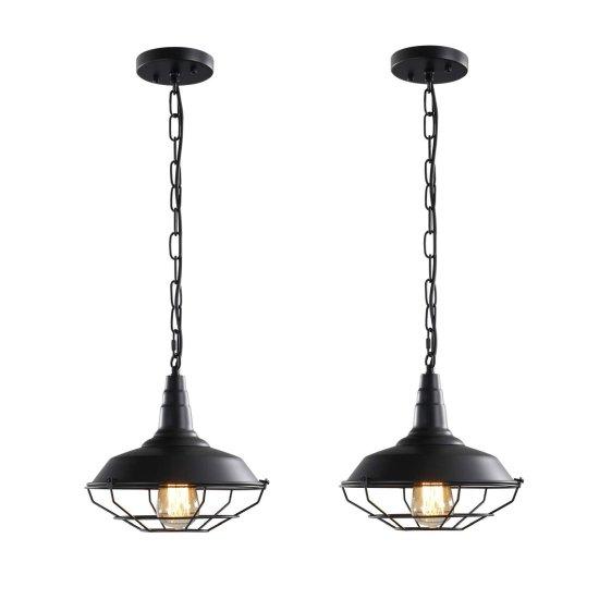 Bu iki parçalı endüstriyel sarkıt avize seti, modern ve kırsal tarzı mükemmel bir şekilde birleştiriyor. Siyah mat metal gövdesi ve tel kafes tasarımıyla mutfak, yemek odası ve benzeri mekanlara şık bir aydınlatma çözümü sunuyor.