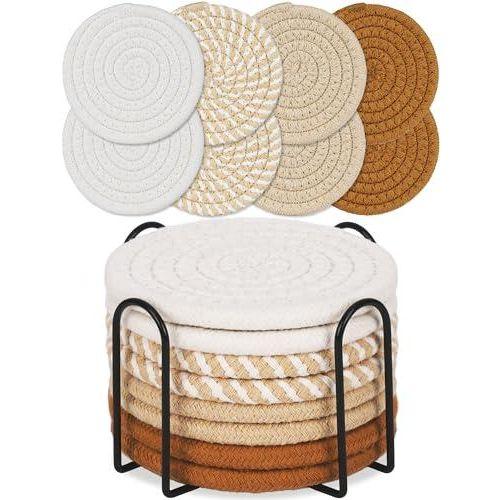Bohem ve minimalist çizgilere sahip bu kahve altlığı seti, ev dekorasyonunuz için şık bir aksesuar olarak öne çıkıyor. Dokuma pamuklu kumaştan üretilen set, doğal ve yumuşak bir görünüm sunuyor. Bej ve toprak tonlarındaki renk paleti, farklı dekorasyon stillerine uyum sağlayabilecek bir tasarıma sahip.