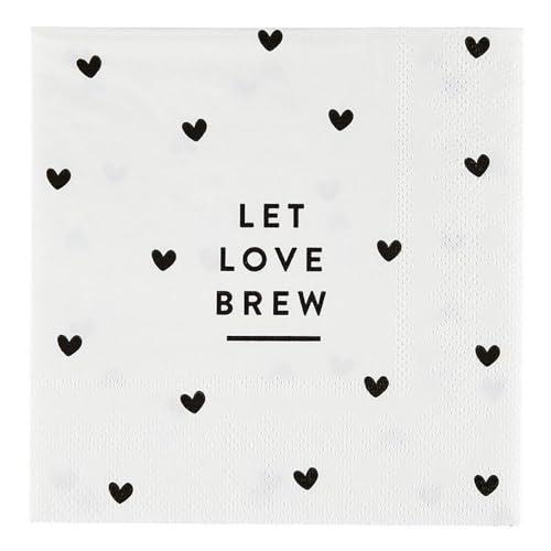 Bu zarif peçete seti, kahve tutkunları ve ev toplantıları için özel olarak tasarlanmıştır. Sade ve şık siyah beyaz renk kombinasyonu, modern bir estetik yaklaşım sergiler. Üzerinde küçük siyah kalp desenleri ve “Let Love Brew” yazısı bulunan peçeteler, hem görsel hem de mesaj açısından oldukça çekici.