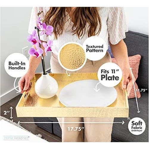 Boyutları ve altın renkli timsah derisi dokusuyla her dekora uyum sağlayan bu tepsi, evinize şık bir dokunuş katacaktır.