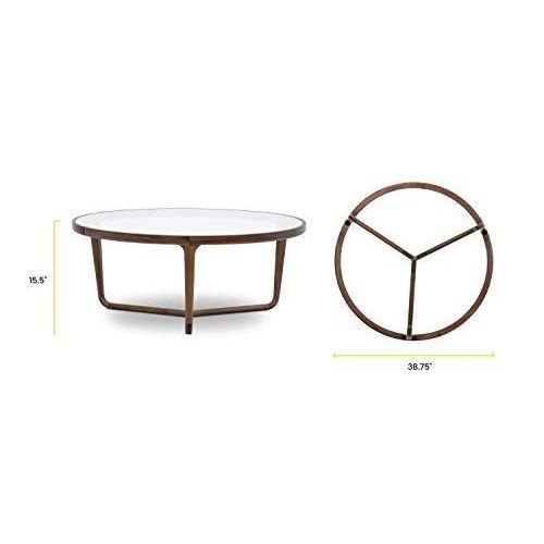 Yuvarlak formunda tasarlanan sehpanın üst yüzeyi temperli camdan oluşuyor. Beyaz renkteki cam yüzey, ahşap çerçeveyle kontrast oluşturarak modern ve zarif bir görünüm yaratıyor. Cam yüzey hem dayanıklı hem de kolay temizlenebilir özellikte.