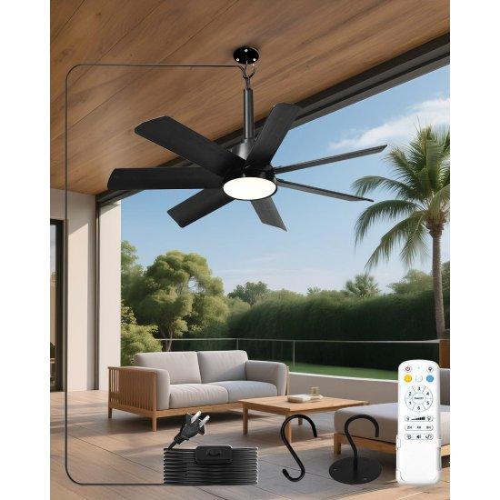 Bu ürün, dış mekan kullanımına özel tasarlanmış şık bir tavan vantilatörüdür. Siyah rengi ve modern tasarımıyla açık alan dekorasyonlarına mükemmel uyum sağlar. Vantilatör, 28 cm çapında LED ışıklı bir yapıya sahiptir ve uzaktan kumanda ile kontrol edilebilmektedir.
