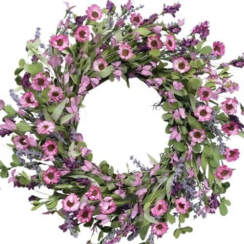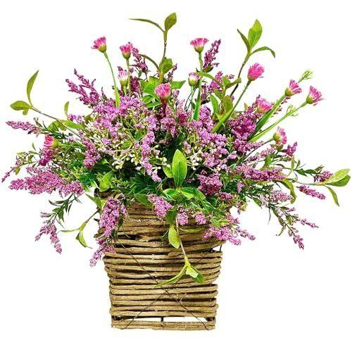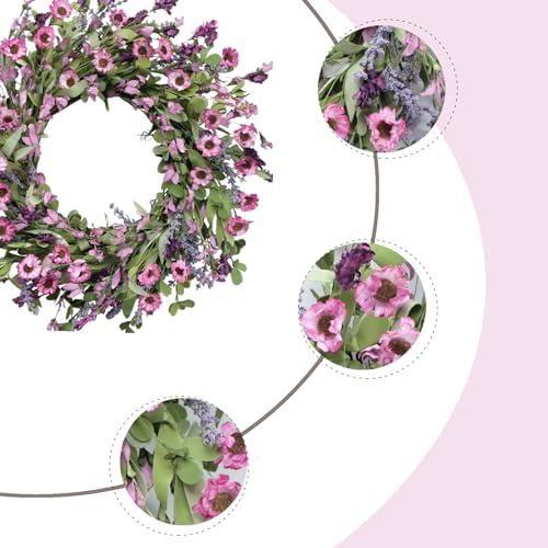 Bahar Esintisi Pembe Mor Yapay Çiçek Kapı Önü Çelengi