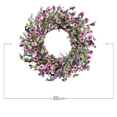 Bu çelenk, doğanın canlılığını ve baharın renklerini bir araya getiren etkileyici bir dekoratif aksesuar. Yaklaşık 51 cm çapında zengin bir çiçek düzenlemesine sahip. Yumuşak pembe papatyalar, mor lavantalar ve canlı yeşil yapraklarla bezeli doğal asma dalı zemini üzerinde şık bir görünüm sergiliyor.