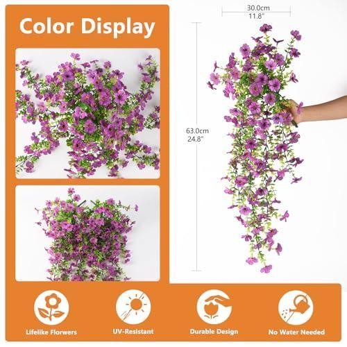 Çiçekler, mor, pembe ve mavi tonlarında zengin bir renk paleti sunmaktadır. Yapay bitkiler, güneş ışığına dayanıklı UV korumalı malzemeden üretilmiştir. Renkler solmaz ve dış mekân koşullarında uzun süre canlılığını korur.