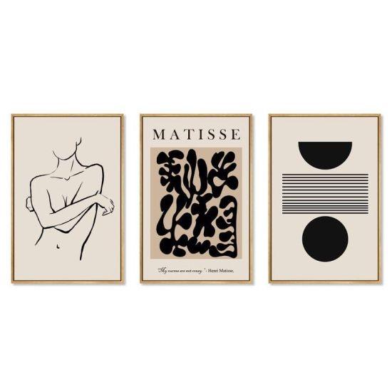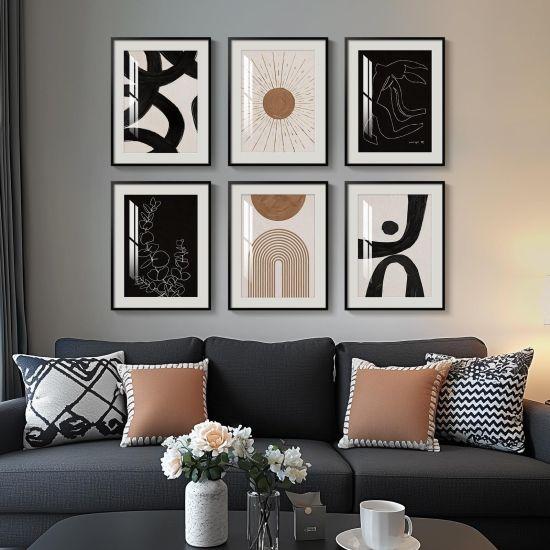 Minimal siyah çerçeveler ve geniş beyaz paspartular, fotoğrafları şık bir şekilde tamamlıyor ve görüntülerin etkisini artırıyor. Bu tasarım, resimlerin duvarınızda adeta yüzüyormuş gibi görünmesini sağlıyor.