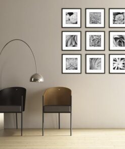 Bu dokuz parçalık kare tablo seti, çiçeklerin zarif güzelliğini siyah-beyaz fotoğrafçılığın etkileyici kontrastıyla buluşturuyor. Her biri 30×30 cm boyutunda olan bu tablolar, evinize veya ofisinize rafine bir estetik katmak için tasarlanmış.