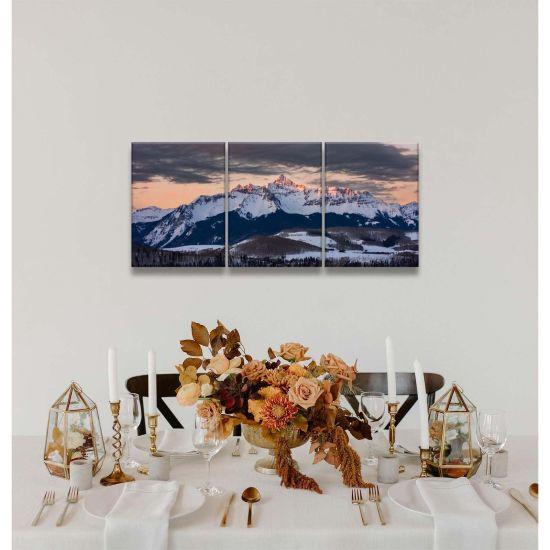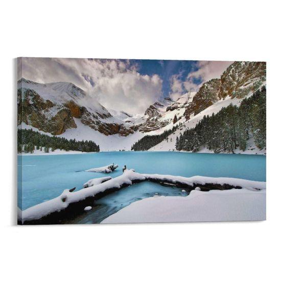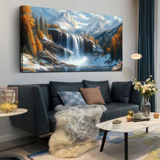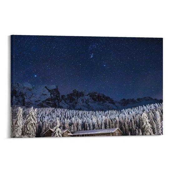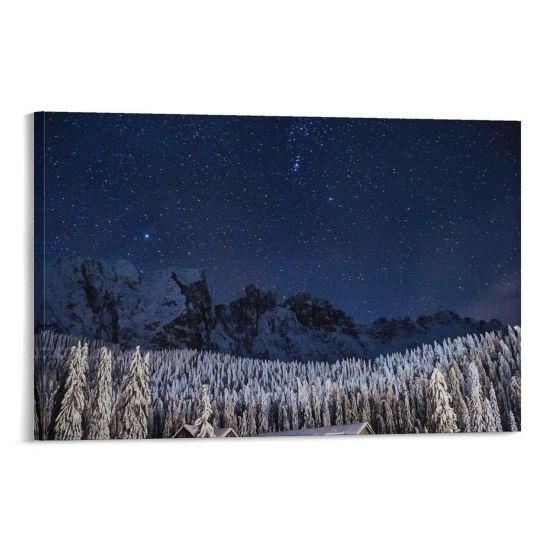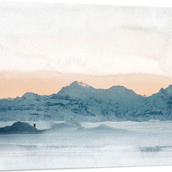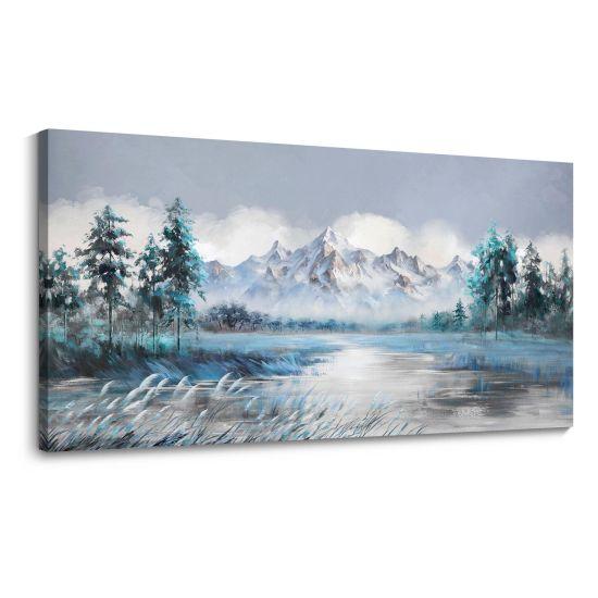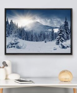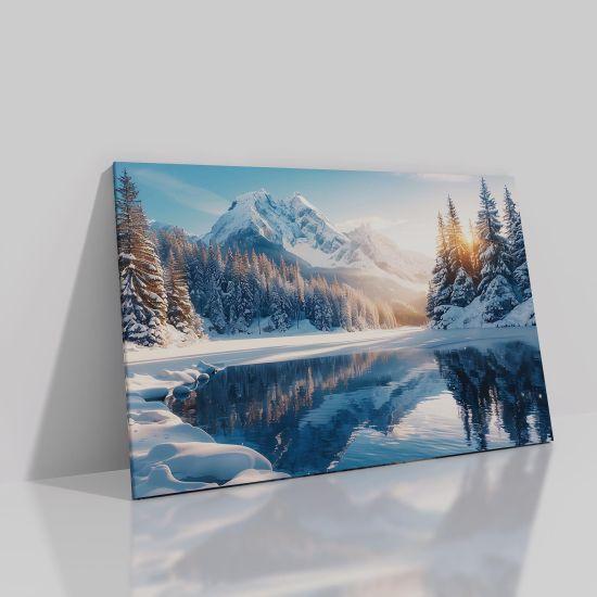 Bu karlı dağ tablosu, evinize huzur ve dinginlik katar. Kışın büyüleyici atmosferini her gün yaşamanızı sağlar. Dekoratif ve etkileyici bir duvar aksesuarı arayanlar için harika bir ürün.