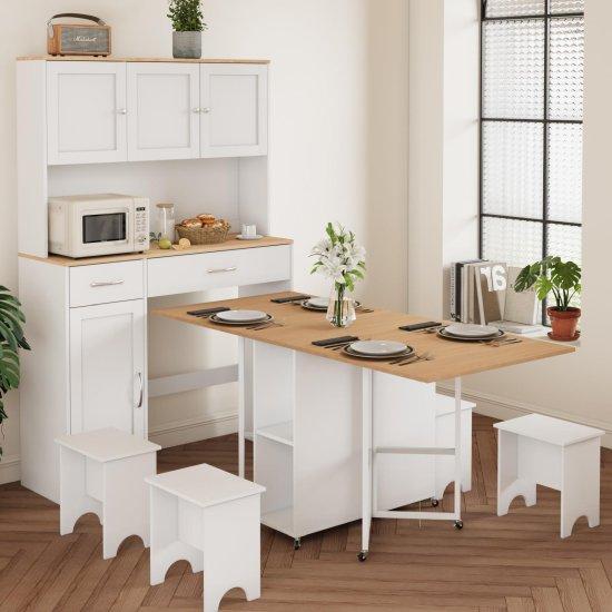 Beyaz Ahşap Katlanır Mutfak Masası ve Depolama Ünitesi