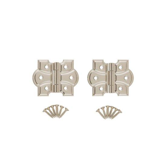 Menteşelerin tasarımı, geleneksel mobilya yapımında sıkça kullanılan zarif bir kelebek formundadır. Her bir menteşe, düzgün yerleştirilmiş 4 adet vida deliği içerir. Bu özellik, mobilyalara kolay ve sağlam montaj imkanı sağlar.