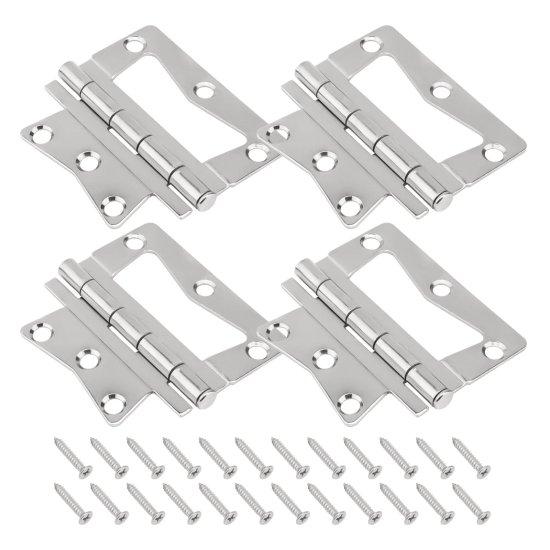 Menteşelerin parlak gümüş rengi ve pürüzsüz metal yüzeyi, modern ve endüstriyel bir görünüm sağlar. Paslanmaz çelik malzeme, nem, pas ve aşınmaya karşı mükemmel bir direnç gösterir.