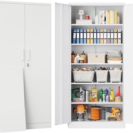 Dolap 5 adet ayarlanabilir rafa sahiptir. Bu özellik, farklı boyutlardaki eşyaları düzenli bir şekilde depolamanıza olanak tanır. Mutfak, ofis, garaj, ev veya atölye gibi çeşitli alanlarda kullanılabilir.