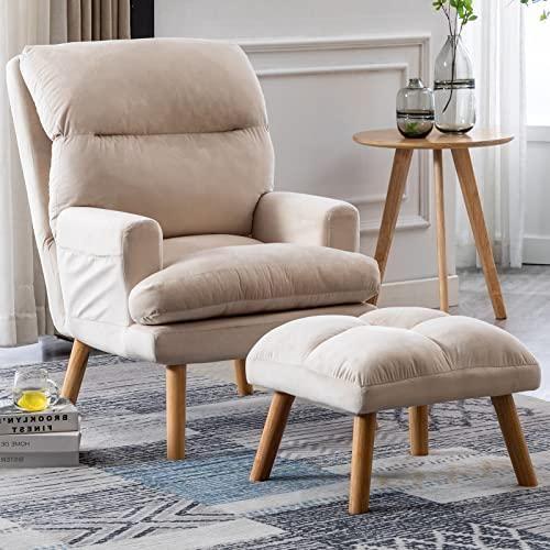 Yumuşak Dokulu Bej Kitap Okuma Koltuğu ve Taburesi