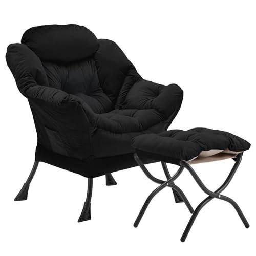Yumuşak Siyah Kadife Kitap Okuma Koltuğu ve Puf Seti