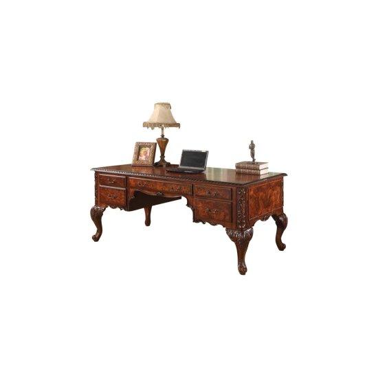 Bu çalışma masası, geleneksel İngiliz mobilya tasarımının zarif bir yansımasıdır. Zengin kiraz rengi ahşap dokusuyla göz dolduran masa, endüstriyel ahşap işçiliğinin güzel bir örneğini sergiliyor.