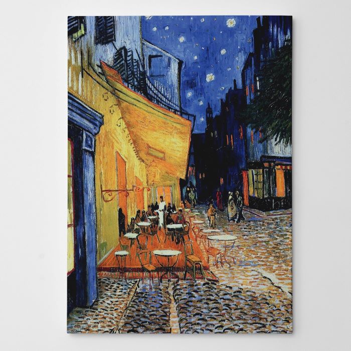 Bu klasik tablo, ünlü Post-Empresyonist ressam Vincent van Gogh’un en tanınmış eserlerinden biri olan “The Café Terrace” (Kafe Terası) adlı çalışmasının 40cm x 50cm boyutlarında bir reprodüksiyonudur.