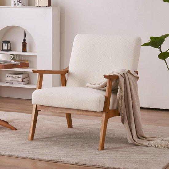 Bu şık koltuk, modern ve vintage tarzı mükemmel bir şekilde birleştiren bir dinlenme koltuğudur. Yumuşacık krem rengi teddy kumaşı ve ahşap çerçevesiyle her mekana zarafet katar.