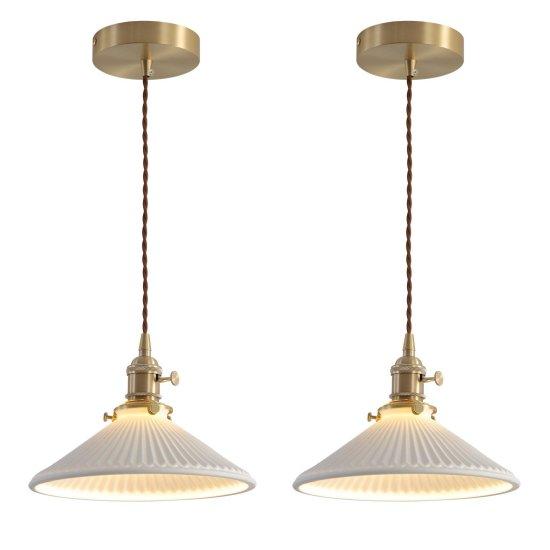 Yaklaşık 28 cm çapında geniş bir abajura sahip olan avizeler, yumuşak ve dağınık bir ışık yayarak ortama sıcak bir atmosfer sağlıyor. Detaylı cam işçiliği ve altın rengi metal aksamıyla şık bir görünüm sergiliyor.