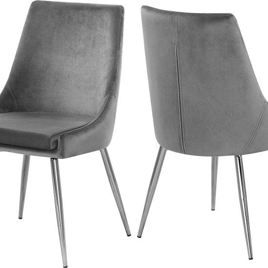 Gri Kadife Kaplamalı Modern Krom Ayaklı Sandalye Seti