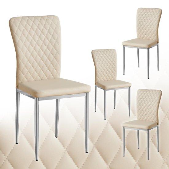 Açık krem rengi, farklı dekorasyon stillerine kolayca uyum sağlayabilecek nötr bir ton. Parlak krom metal ayaklar ise modern ve çağdaş bir etki yaratıyor. Sandalyeler hem mutfak hem de yemek odası için oldukça uygun.