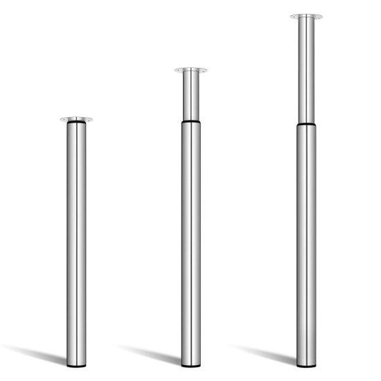 Paslanmaz çelik malzemeden üretilen masa ayakları, parlak krom kaplaması sayesinde pırıl pırıl bir yüzeye sahip. Üç farklı boyda sunulan ayaklar, 28 cm ile 43 cm arasında yükseklik ayarı yapılabilmesine olanak tanıyor. Bu özellik, kullanıcılara farklı yüksekliklerde masa ve tezgah oluşturma esnekliği sağlıyor.
