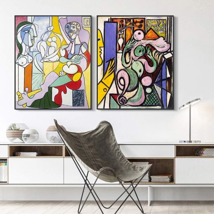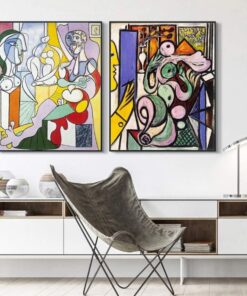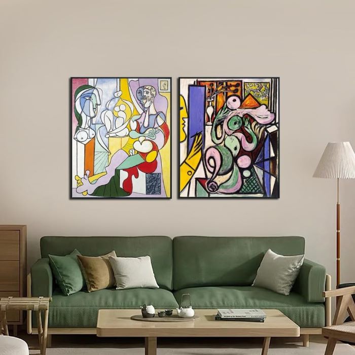 Bu etkileyici ikili tablo seti, kübizmin öncüsü Pablo Picasso’nun eserlerinden ilham alınarak tasarlanmıştır. Her biri 61×81 cm boyutlarında olan bu tablolar, modern sanatın özünü yansıtır.