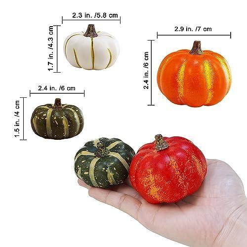 Her bir balkabağı yüksek kaliteli köpük malzemeden üretilmiş olup, gerçekçi çizgiler ve beneklerle detaylandırılmıştır. Kısa kahverengi sapları, doğal görünümü tamamlıyor. Boyutları 6-7 cm arasında değişen bu küçük balkabakları, çeşitli dekorasyon alanlarında kullanılabilir.