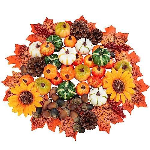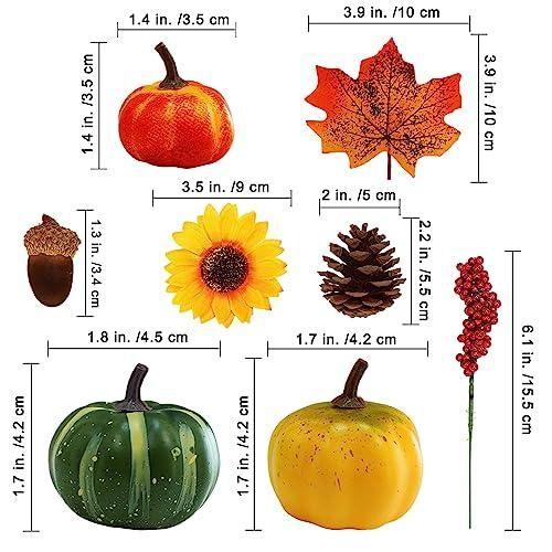 Bu dekoratif ürün, sonbaharın büyülü atmosferini evinize taşıyan zengin bir aksesuar koleksiyonudur. Toplam 28 adet yapay küçük balkabağı, 20 adet yapay meşe palamudu, 10 adet yapay akçaağaç yaprağı, 5 adet doğal çam kozalağı, 2 adet yapay ayçiçeği ve 3 adet yapay çilek dalından oluşur.
