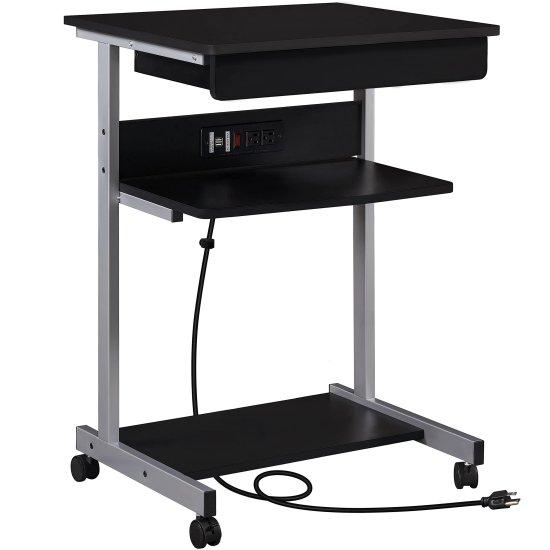 Modern Siyah Tekerlekli Küçük Ofis Bilgisayar Masası