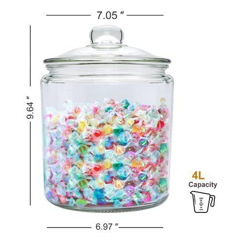 Bu dekoratif cam kavanoz, mutfaklarınıza şıklık ve işlevsellik katacak çok yönlü bir saklama çözümüdür. Yüksek kaliteli şeffaf camdan üretilen kavanoz, yaklaşık 4 litre (1 galon) hacmiyle kurabiye, un, kahve, baharat gibi kuru gıdaları saklamanıza olanak sağlar.