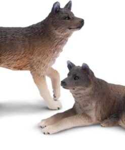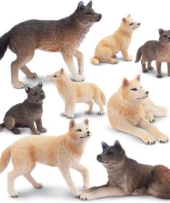 Set içerisinde farklı boyutlarda ve pozlarda kurtlar bulunur. Büyük, gri renkli yetişkin kurt heybetli duruşuyla dikkat çeker. Yanında oturan, uzanan ve ayakta duran pozisyonlarda daha küçük yavru kurtlar yer alır. Açık sarı ve kahverengi tonlarındaki kurtlar, türün renk çeşitliliğini yansıtır.