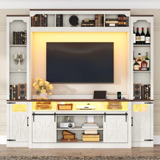 LED aydınlatma ve elektrik prizleri gibi modern özellikler, kullanışlılığını artırıyor. TV’nizi kolayca yerleştirebileceğiniz geniş bir alan mevcut. Yan taraftaki kitaplık bölümleri sayesinde hem eğlence hem de depolama alanı sağlıyor.