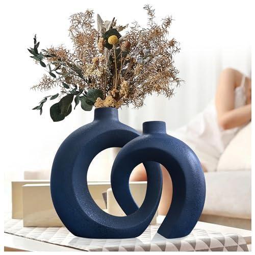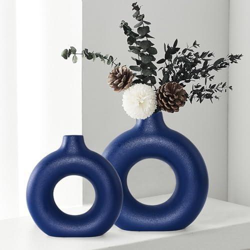 Modern Lacivert Halka Tasarım Seramik Vazo Seti