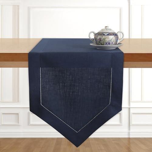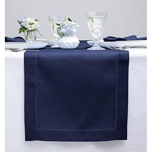 Bu zarif masa örtüsü, %100 saf Avrupa keten kumaştan üretilmiş olup, klasik hemstitch (kenar dikişi) tasarımıyla sofranıza şıklık katar. Derin lacivert rengi, her türlü masa düzenlemesine uyum sağlayarak zengin bir görünüm sunar.