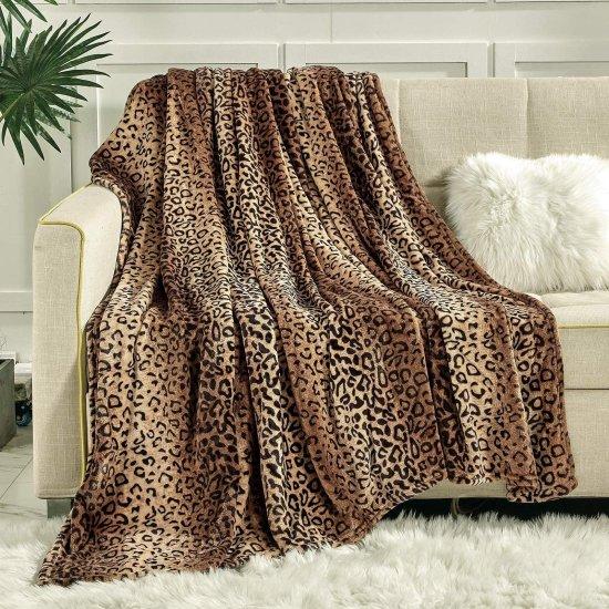 Yumuşacık Kahverengi Leopar Desenli Peluş Battaniye