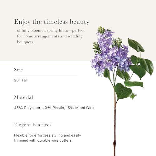 Bu yapay leylak dalı demeti, doğanın inceliğini ve zarafetini evinize taşıyan benzersiz bir dekoratif aksesuar. Yumuşak menekşe ve açık mor tonlarında, gerçekçi görünümlü ipek çiçeklerden oluşuyor. Her bir demet yaklaşık 76 cm uzunluğunda ve toplam 10 demet içeren bir pakette geliyor.