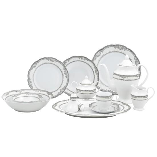 İnce İşçilikli Gri Kenarlı Porselen Yemek Takımı