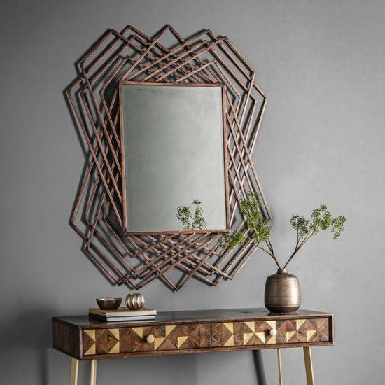 - Malzeme: Metal çerçeve (altın rengi), yaprak şekilli metal dekoratif parçalar, ayna detayları