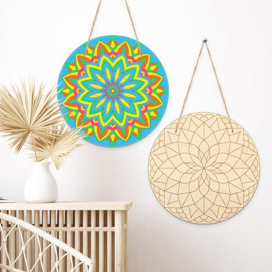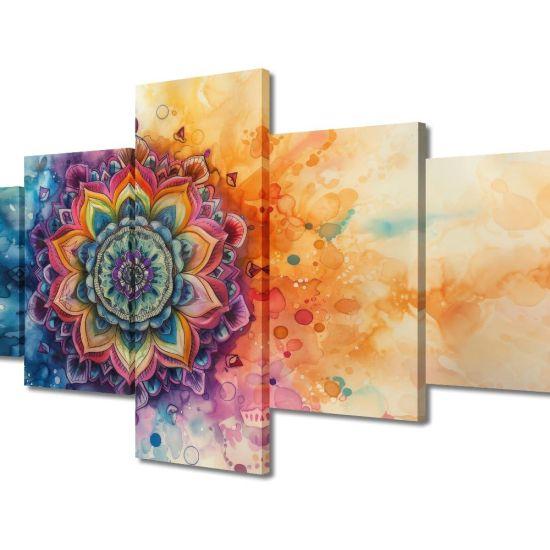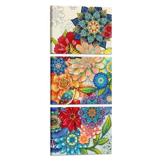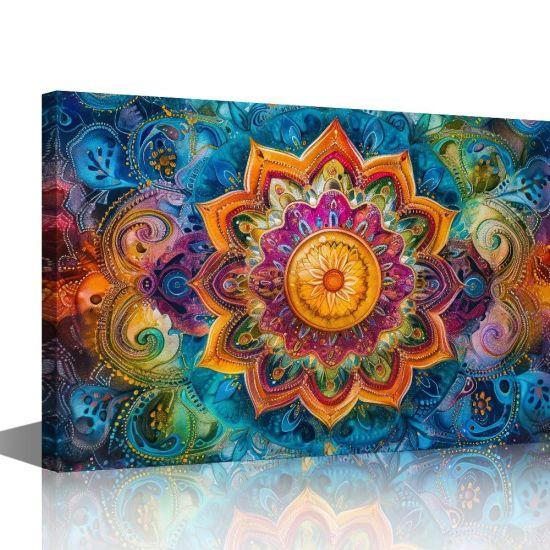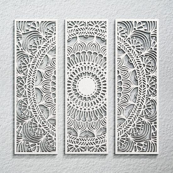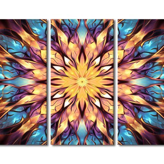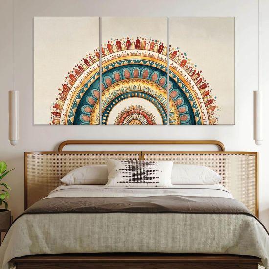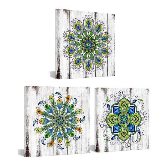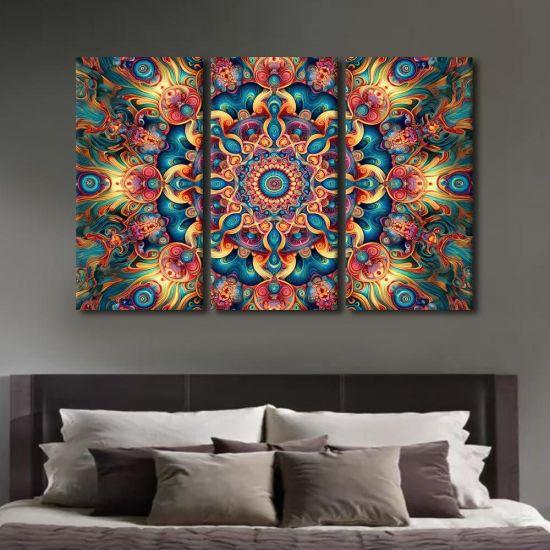 Bu göz alıcı 3 parçalı mandala tablo seti, evinize renkli ve sanatsal bir dokunuş katacak mükemmel bir duvar dekorasyonu çözümüdür.