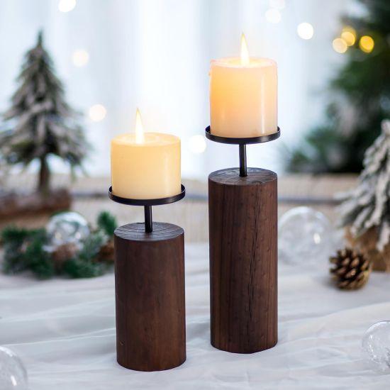 Rustik Ahşap Yuvarlak Dekoratif Masa Üstü Mumluk Tepsi Seti
