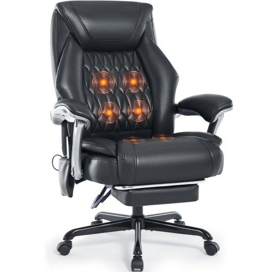 Isıtıcılı ve Masajlı Ergonomik Siyah Deri Ofis Koltuğu