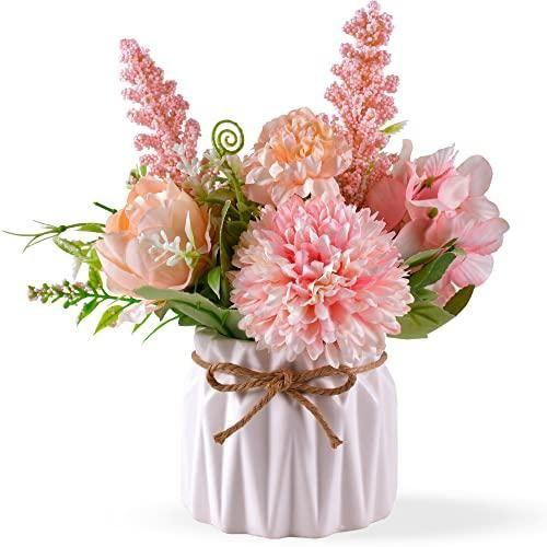 Yumuşak Pembe Tonlu Seramik Vazolu Yapay Çiçek Aranjmanı