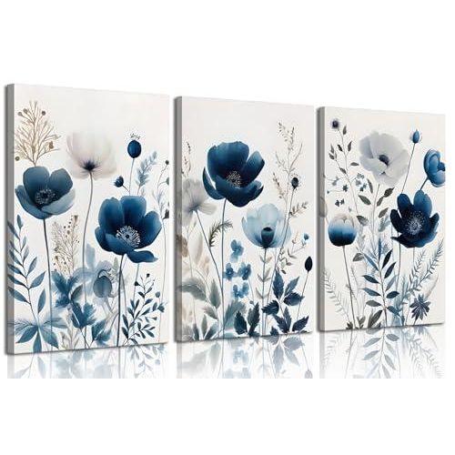 Bu dekoratif tablo seti, modern ve bohem tarzı bir araya getiren zarif bir duvar sanatı örneğidir. Üç parçadan oluşan tablolar, yumuşak tonlarda mavi ve gri renklerde soyut çiçek desenleri içerir. Her bir tuval 30×40 cm boyutunda olup, farklı açılardan çiçek ve bitki desenlerini yansıtmaktadır.
