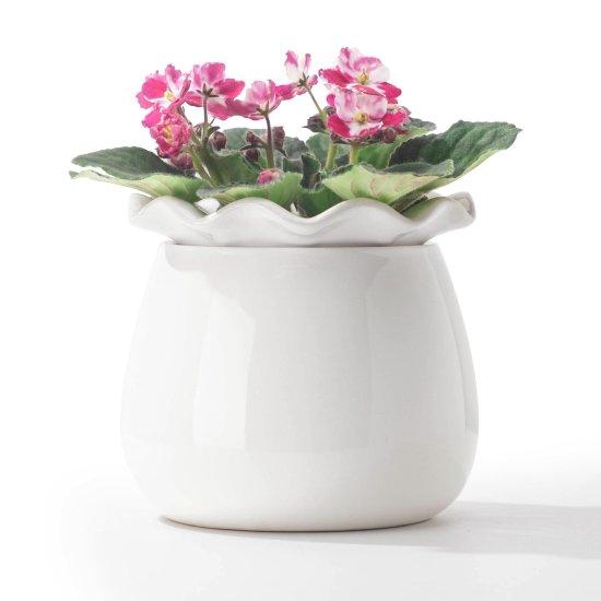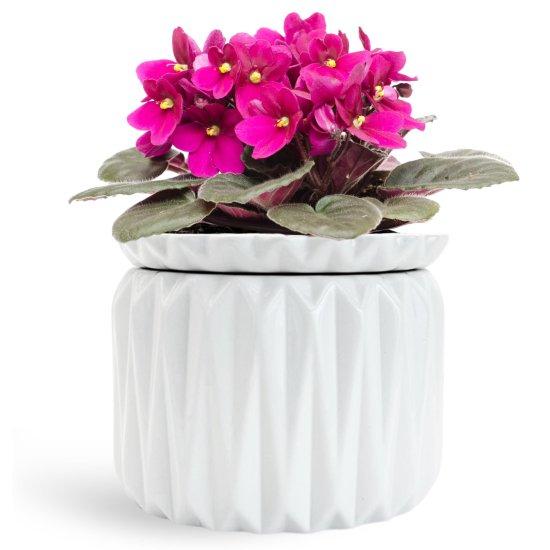 Kendinden Sulayan Beyaz Seramik Menekşe Saksısı