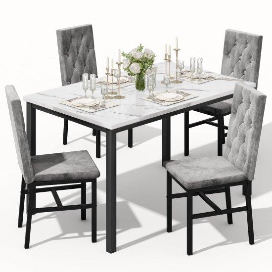 Modern Beyaz Mermer Desenli 5 Parça Yemek Masası Takımı