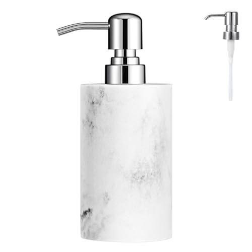 Günümüz banyo ve mutfak dekorasyonlarında zarif bir dokunuş sunan bu mermer görünümlü sıvı sabunluk, hem işlevsellik hem de estetik açıdan dikkat çekici bir aksesuar.